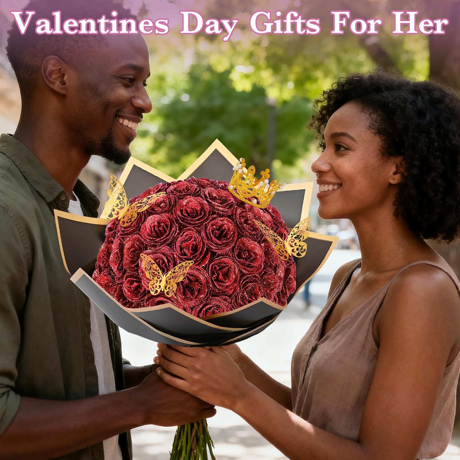 Our Glitter Rose Bouquet is crafted from high-quality materials designed to mimic the look of real roses while adding a glittering touch that lasts forever